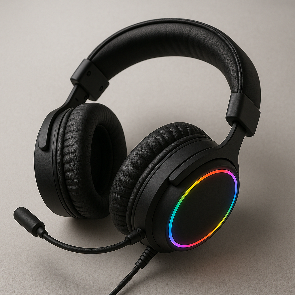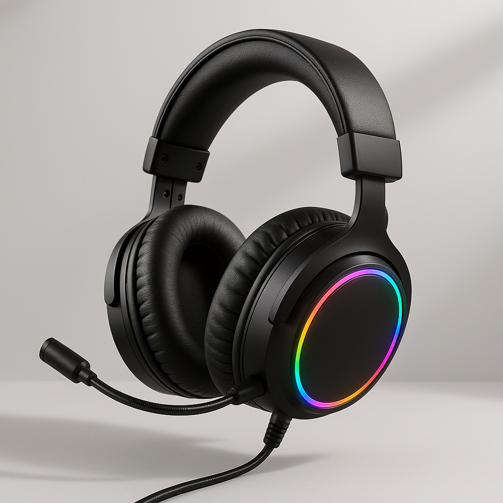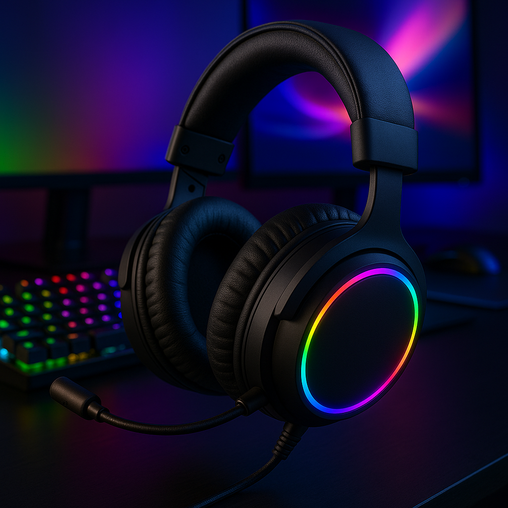 Casque gaming 7.1 avec micro antibruit et éclairage RGB.