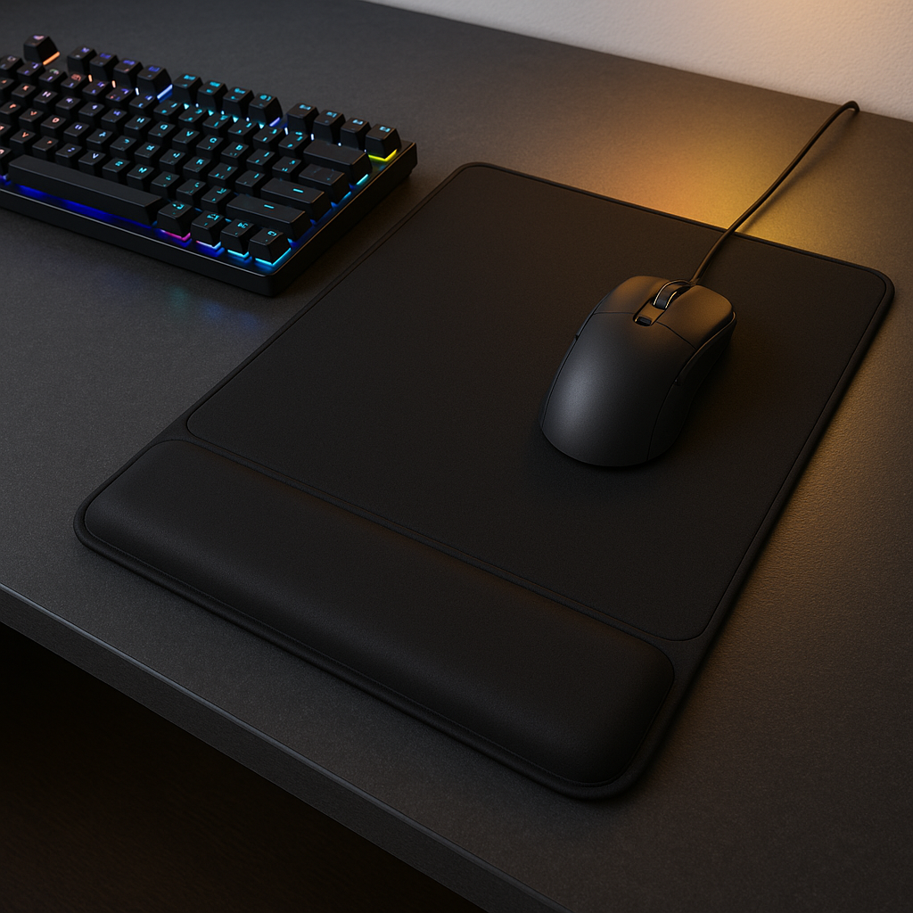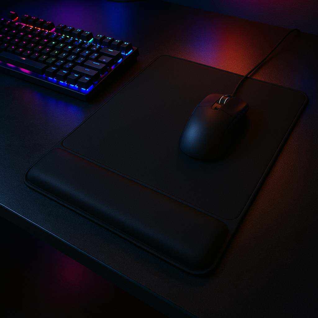 Tapis de souris XXL avec repose-poignet, confort et précision.