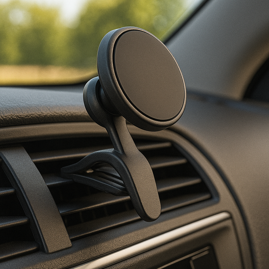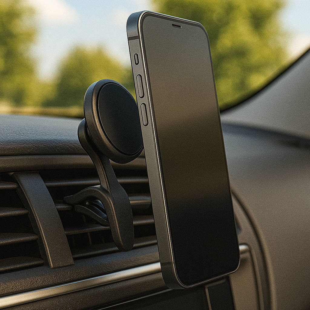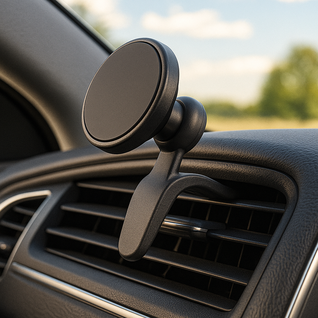 Support voiture magnétique rotatif 360°, fixation sûre et design compact.